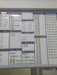 공룡나라 고성군 버스 터미널 시간표이다.(사진촬영 11월 1일) 서울, 대전, 대구, 창원 팔용동, 서부산, 부산 동래, 울산, 마산 댓거리, 김해, 천안, 해운대, 통영, 고현, 장승포, 진주, 사천의 타 지역으로 버스로 이동이 가능하다.부산행 막차는 20시 40분, 마산 댓거리행 막차는 21시 45분이다.장승포막차는 21시 45분, 통영막차는 22시30분이다. . 고성군 군내버스 시간표이다.